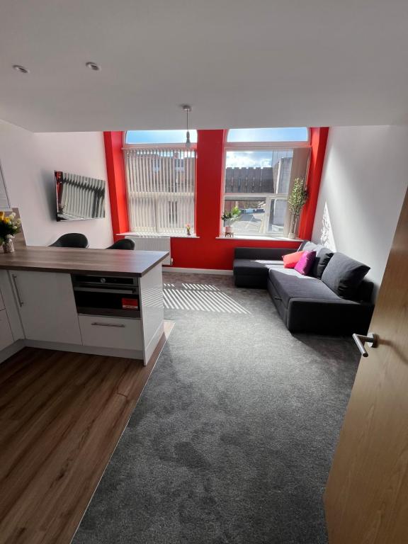 Spacious Accommodation: Flat 1 - Luxury Bolton City Centre Apartments in Bolton offers a spacious apartment with one bedroom and a living room. The property features family rooms and a fully equipped kitchenette.